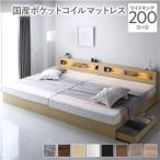 (タイムセール中) ローベッド ワイドキング200(S+S) マットレス付き 照明 国産ポケットコイル(レギュラー) コンセント 連結