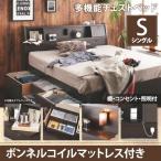 (タイムセール中) シングルベッド マットレス付き ボンネルコイル フラップ棚・照明・コンセント付 引き出し収納 収納付きベッド