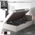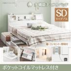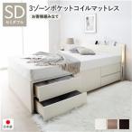 照明・コンセント付き収納ベッド 国産ポケットコイルマットレス付き セミダブル