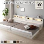 (タイムセール中) ローベッド ダブル マットレス付き 天然ラテックス入り国産ポケットコイル 国産 コンセント・照明付 カップルベッド ダブルベッド