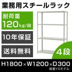 スチールラック 棚 業務用 高さ1800 横幅1200 奥行300 4段 耐荷重120kg 単体 YSシリーズ