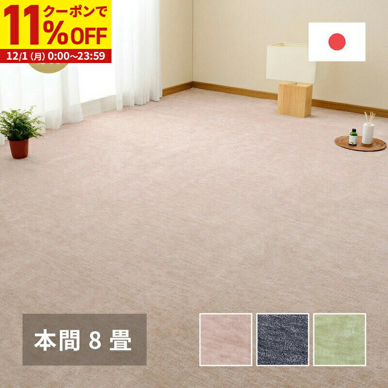 【11%OFFクーポン配布中★12/1に使える】 日本製 敷き詰めカーペット ラウム 本間8帖 8畳 フリーカット ペット 犬 猫 平織 シンプル 約382×382cm