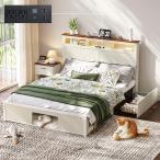 【並行輸入品】FUNKOCO ウッドキングベッドフレーム ファームハウスベッドフレーム 猫&犬ベッド付き 収納ヘッドボードと引き出し2個付き L