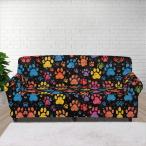 【並行輸入品】GLENLCWE カラフルな足型ソファカバー 通気性 & 洗濯可能 ファブリック クラシック ソファ スリップカバー 犬の足跡 ユ