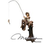 Marestia マレスティア 魚釣りをする少年トムと犬 オブジェ ハンドメイド 【オーナメント 彫刻 銅像 アンティーク インテリア】【店舗装飾 真鍮 青銅 ブロンズ像 置き物 置物】【小説 庭 コテージ カフェ 看板 玄関】