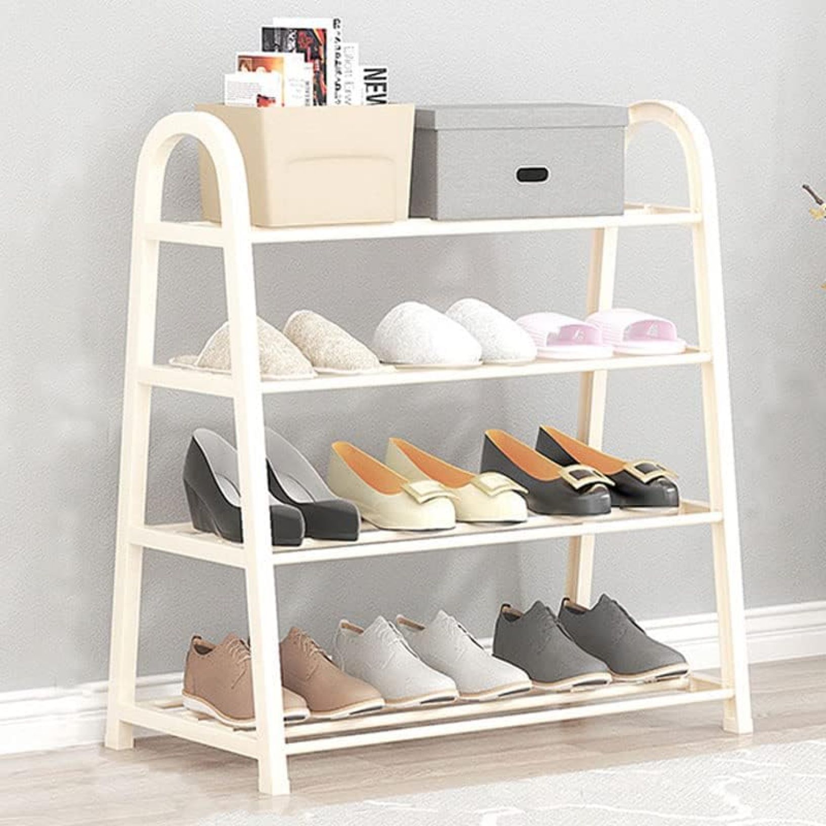 【20%OFFクーポン〜】簡易シューズラック 4段 2サイズ スリム 靴 省スペース くつ 下駄箱 シューズボックス シューズケース 靴ホルダー 靴箱 玄関 オシャレ 収納 ブーツ ホワイト 45*65*29cm 一人暮らし