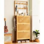 シューズボックス 下駄箱 玄関収納 スリム 縦型 玄関 オーガナイザー 薄型 竹製 リビング フック付き収納 シューズラック 省スペース 斜め 狭い玄関 棚 靴箱
