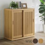 和風 靴箱 幅90cm 格子 下駄箱 和風 木製 玄関収納 引き戸 国産 無垢材 高級感 和モダン ブラウン ナチュラル 日本製 玄関 収納 縦格子 シューズボックス