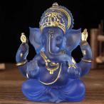 インドの神 ガネーシャ神像 ブルー ラミネーション ガラス ヒンズー教の象像 ガンパティ アイドル 仏像 ヒンズー教
