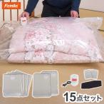 ファミラ 布団圧縮袋 15点セット 掃除機不要 省スペース 衣類圧縮袋 竹炭シート付 専用吸引機付 透明 コンパクト収納 隙間収納 押し入れ収納 代引不可