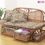天然籐 ハイバックカウチソファ 幅120 03506 の 通販 【送料無料】 [天然籐ソファ 幅120 ハイバック カウチソファ 花柄 ラタンソファ 引き出し2杯 肘掛け無し 収納付きソファ]