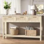 【並行輸入品】ELYKEN 51インチ 籐製コンソールテーブル 木製玄関テーブル 収納付き 引き出し3個付き 細長いソファテーブル カウチ裏 廊