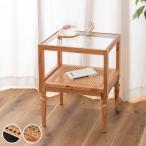 ラタンテーブル ガラス天板 ナイトテーブル 籐家具 幅41cm ( センターテーブル アジアン )