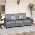 【並行輸入品】SUNSITT 屋外パティオソファ、全天候型籐製3人掛けソファ、屋外座席パティオ家具ソファ、バルコニーポーチデッキ用グレーオレフィ