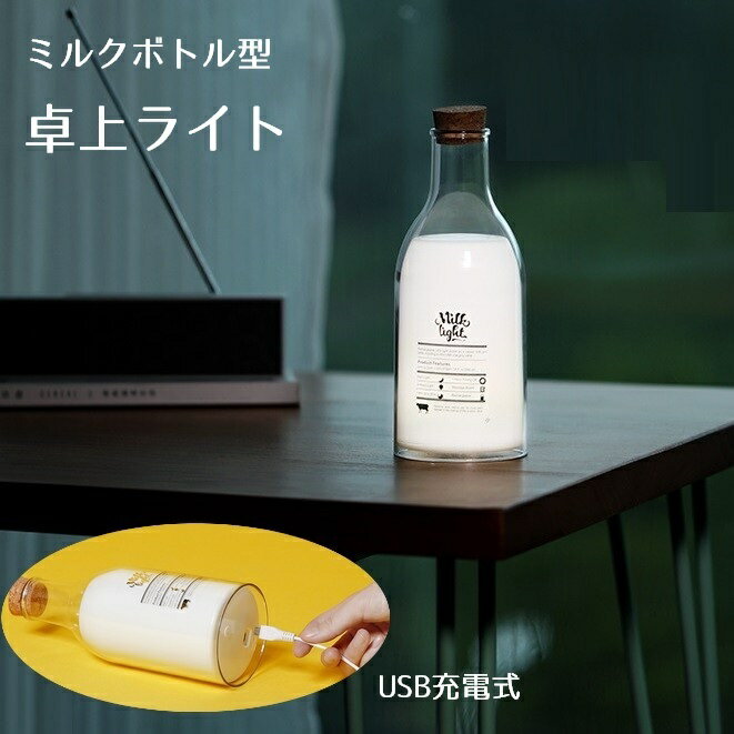 送料無料 テーブルランプ テーブルライト 卓上ライト USB充電式 卓上照明 間接照明 ミルクボトル型 牛乳瓶 ナイトライト 充電式 インテリア雑貨 インテリア小物 おしゃれ かわいい ナチュラル シンプル 白 プレゼント 贈り物