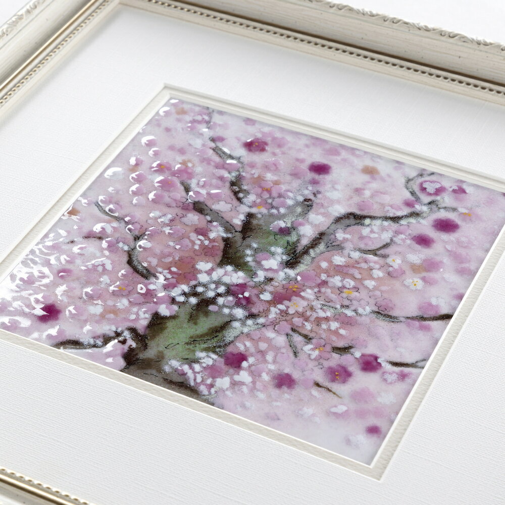 桜 七宝焼 七宝焼き 七宝絵画 額 アート 水彩画 絵 絵画 額縁付き イラスト ガラス 花 プレゼント 新築祝 春 日本の春 満開の桜 インテリア