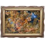 ペルシャ絨毯 イラン・タブリーズ絵画 122×102cm(額縁込) 手織り 絵画絨毯 (FP-11)