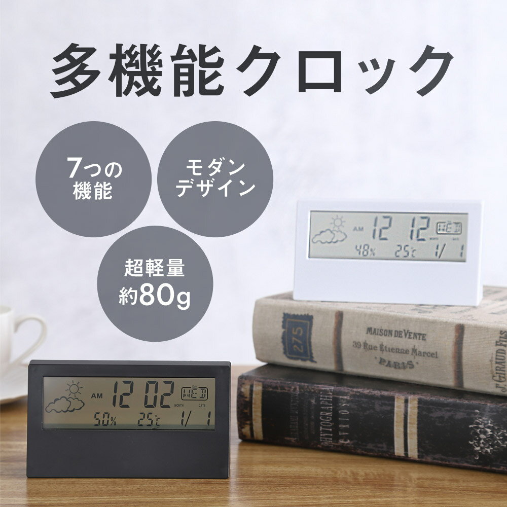 【期間限定10%OFF★12/4 20:00〜11 1:59迄】温湿度計付き置き時計 多機能クロック 超軽量 置き時計 デジタル おしゃれ 液晶透明 ホワイト ブラック 多機能 目覚し時計 デジタル時計 モダン 置時計 おしゃれ 置き時計 かわいい 温度 湿度 目覚まし時計 Smile mode