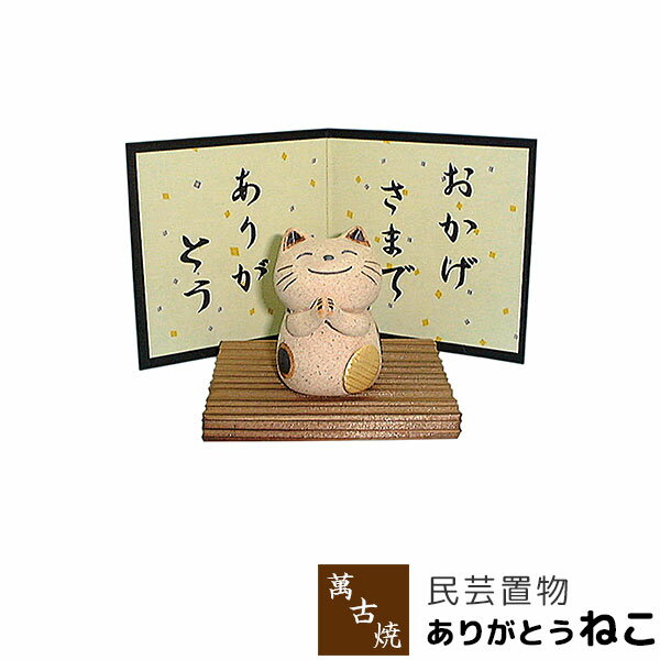 【取寄品】 萬古焼 民芸置物 ありがとう ねこ猫 ネコ 置き物 かわいい 可愛い 玄関置物 民芸品 おしゃれ 和風 インテリア 縁起物 和雑貨 ギフト プレゼント お祝い 母の日 敬老の日 結婚祝い 陶器 焼き物 万古焼 ばんこ焼き 日本製