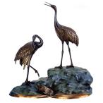 縁起物 吉祥| 岩上に鶴亀 古銅色分け |昇作|青銅(ブロンズ)製【高岡銅器 置物】
