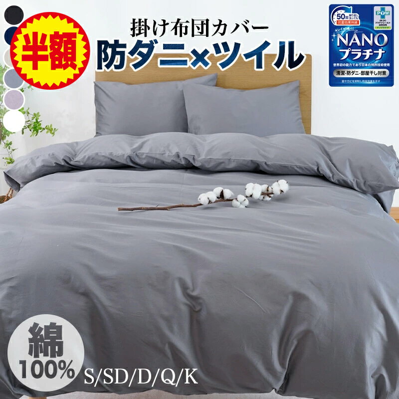 【2枚目半額】掛け布団カバー 綿100% シングル 防ダニ セミダブル ダブル クイーン キング 布団カバー 綿 210 230 高密度 ツイル織 かけ布団カバー 綿100 掛けふとんカバー 掛布団カバー コートン めん100 オールシーズン 抗菌防臭 通気吸湿 羽毛布団カバー