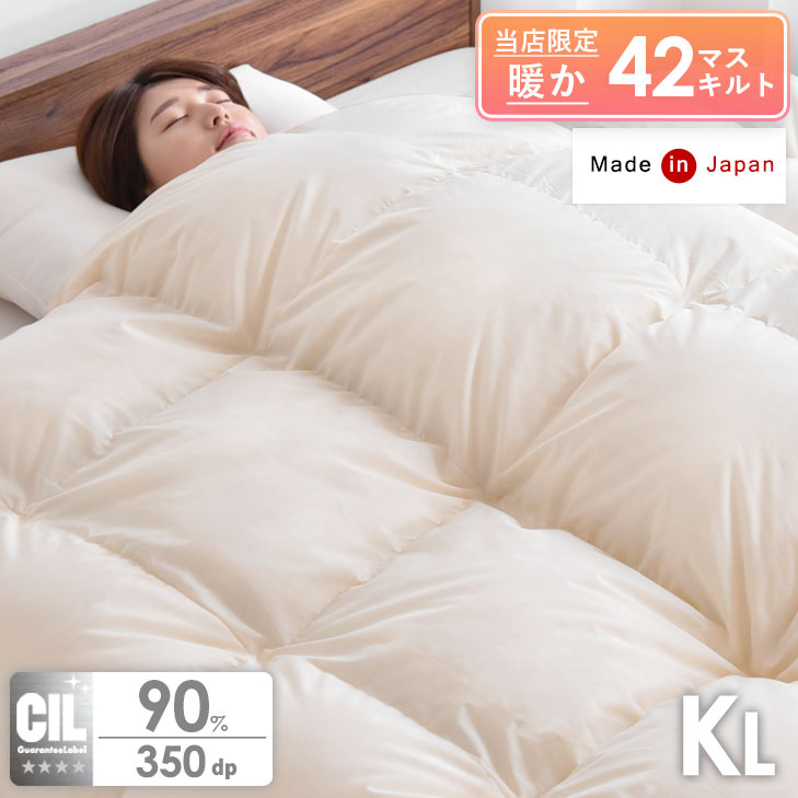 羽毛布団 42マス暖か立体キルト 日本製 羽毛布団 CILシルバーラベル キング ロング ホワイト ダウン 90% 350dp以上 かさ高145mm以上 抗菌 7年保証 国産 掛け布団 掛布団 羽毛掛け布団 ファミリー 家族 親子 子供 冬 冬布団 軽い 暖かい 2kg