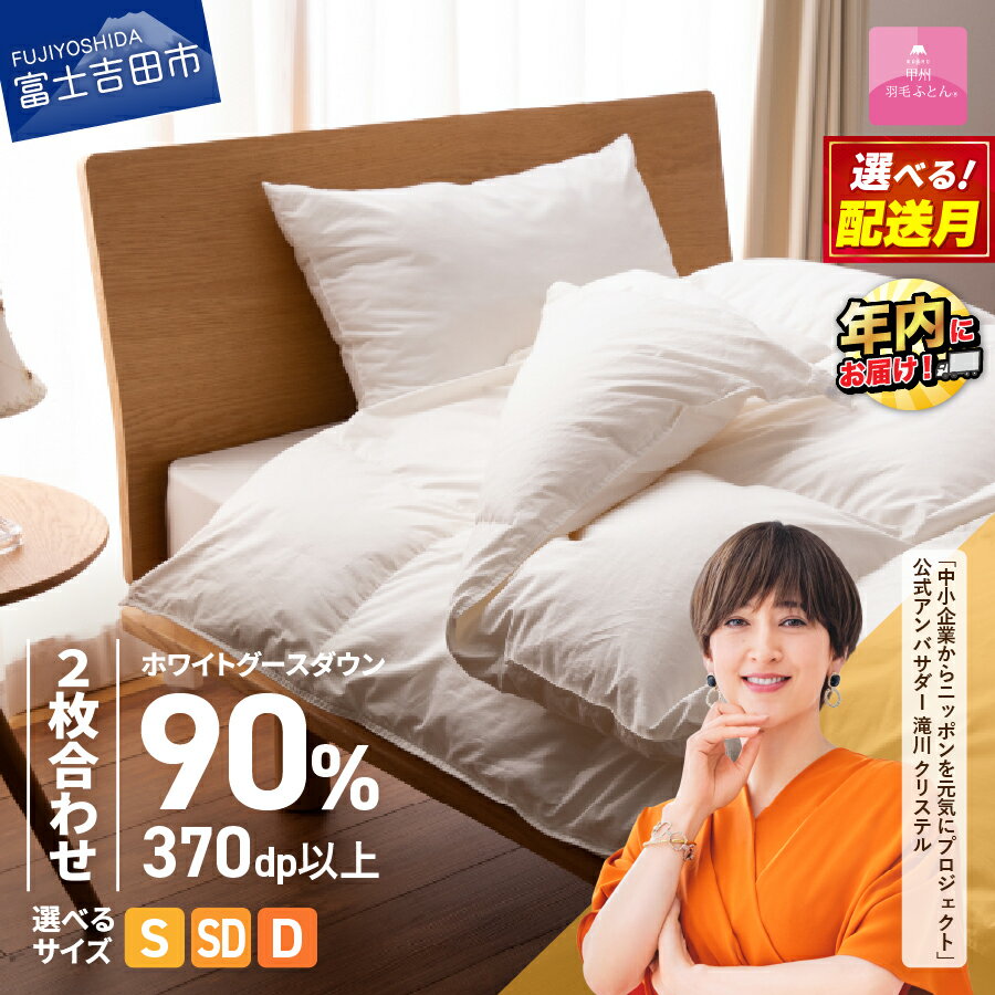 【ふるさと納税】 羽毛布団 洗える ふとん 2枚合せ 選べるサイズ シングル セミダブル ダブル クイーン 選べる配送月 ロイヤルゴールドラベル 日本製 合掛け 肌掛け マザーグースダウン 限定企画品 8カ所ループ付き オールシーズン 回収キット付 【甲州羽毛ふとん】 年内発送