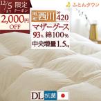 羽毛布団 ダブルサイズ 昭和西川 西川掛カバー特典付 ホワイトマザーグース93% 1.5kg DP420 綿100% 超長綿 抗菌防臭