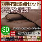 羽毛布団 8点 セット セミダブル ダックダウン 羽毛布団セット 固綿入り ボリューム敷布団 10cm 掛け敷き布団セット 掛布団 敷き布団 枕 布団カバー