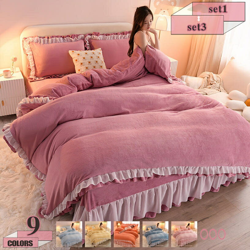 北欧風 綿100% 寝具カバーセット 肌掛け布団カバー 姫系 田園風 引っ越し 新生活 ベッドカバー 可愛い 年中通用 通気性よい ファスナー ひも付き ベッド用品 模様替え 寝心地が良い 冷房対策 インテリア オールシーズン gratiahome