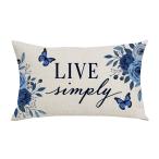 【並行輸入品】WENIANRU インクペインティング ブルー 花 蝶 生きる シンプル 春夏 ホーム ソファ 椅子 ベッド 装飾 腰 枕カバー