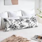 【並行輸入品】Wosendy ブラック ヴィンテージ フローラル 腰枕ケース 長方形 14x36インチ フローラル シノワズリー フラワー ロン