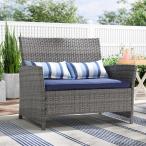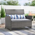 【並行輸入品】SUNSITT アウトドアウィッカーラブシート クッション付き、2人掛けパティオPEラタンソファ、腰枕付き、グレーウィッカー&ブル