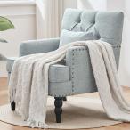 【並行輸入品】HUIMO タフテッドクラブチェア 腰枕付きアクセントチェア 布張りボタンアームチェア リネンファブリックソファチェア 寝室 リビ