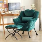 【並行輸入品】DreamNook (ドリームヌーク) レイジーチェア オットマン付き モダンなアクセントチェア 腰枕付き ベルベット ダークグリ