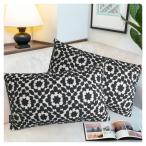 【並行輸入品】2個パック 装飾刺繍サマー腰枕カバー 30.5cmx50.8cm ブラック ミナトレリス ソファスローピローパターン コットンキャ