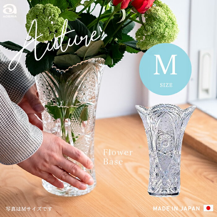 ガラス 花瓶 クリスタル 大きい 【 ソリティア 花器 (M) 】 彫刻 おしゃれ 日本製 広口 透明 硝子 花瓶 大型 フラワーベース ガラス 花瓶 花びん インテリア 花 安定 底面 広いフラワー 植物 高級感 カッティング ギフト プレゼント 贈答用