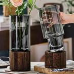 花瓶 フラワーベース シリンダー 花びん 花器 ガラス ウッド 透明 クリア ベース 硝子 ガラスボトル かびん 木 花入れ 生花 ドライフラワー セパレート 卓上