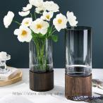 花瓶 ガラス 木製 フラワーベース 北欧 おしゃれ 花器 透明 グレイ グレー 大きい 花びん シンプル 可愛い かわいい インテリア 高さ25cm 一輪挿し 可愛い