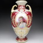 オールドノリタケ レッド地ジュール金盛りポートレート貴婦人 花瓶 26cm
