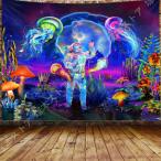 タペストリー 大判 大きい 目隠し 蛍光 土星 惑星 サイケデリック 瞑想 キノコ LSD 幻覚世界 幻想的 アート 飾り カーテン 150cmX130cm UVライト ブラックライト マルチカバーパーティー 野外レイヴ 壁掛 オシャレ 模様替え 布 店舗 什器 テレワーク ズーム会議
