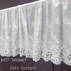 ai 立体刺繍が可愛い パフブーケ セミロング カフェカーテン 横幅約120x60cm 自然な白色生地 ホワイト 刺繍 目隠し出来る 小窓 綿 小花 綺麗 おしゃれ 棚隠
