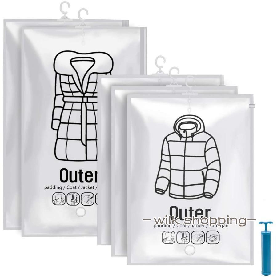 衣類圧縮袋 吊るせる圧縮袋 吊るせる [真空式4枚セット] エアーポンプ付き ハンガー 圧縮 真空ポンプ 耐久性よい 圧縮パック ファスナー付き 防塵 防湿 収納袋