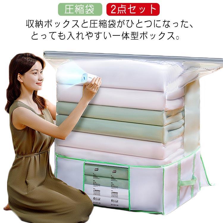 圧縮袋 収納ケース 一体型 2点セット 一体型圧縮BOX 衣類 衣類圧縮袋 布団圧縮袋 圧縮袋付き 衣替え 毛布 ベッド下 収納 押し入れ クローゼッ