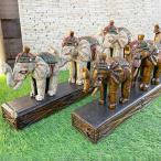 象の置物 3連 木彫りの象 W65cm 2色 金 白 象 ゾウのオブジェ 木製 オブジェ