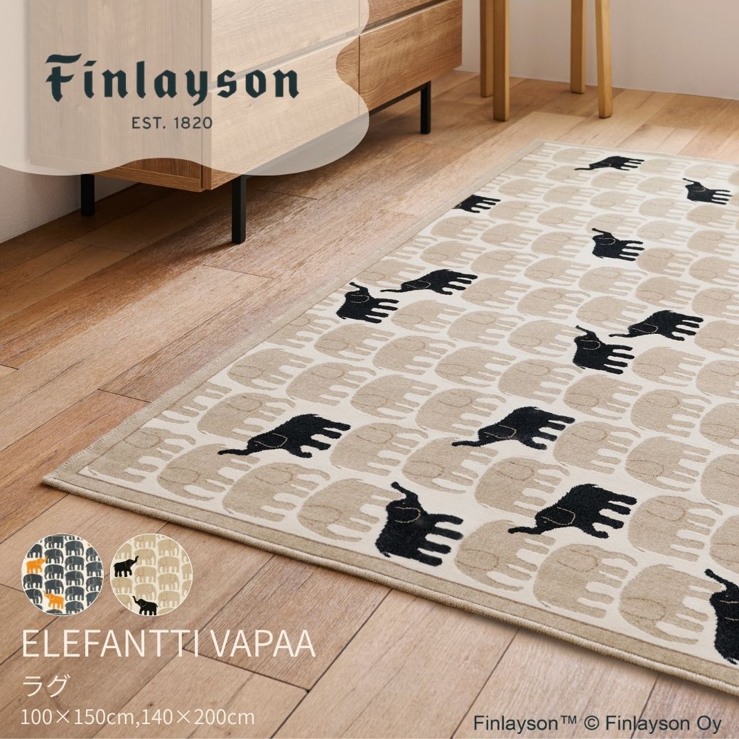 【10月新発売】Finlayson フィンレイソン ELEFANTTIVAPAA エレファンティヴァパア ラグ カーペット 100×150cm 140×200cm 北欧 ベージュ ネイビー 日本製 洗濯機洗い可 滑り止め 滑りにくい 薄型軽量 おしゃれ ゾウ 象 床暖房ホットカーペット対応 一人暮らし インテリア