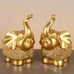 象 ゾウ 置物 オブジェ ゴールド 金 2個セット 豪華 装飾 富 繁栄 樹脂素材 高級感 運 開運 商売繁盛 黄金 インテリア 玄関 リビング 風水 縁起物 贈り物