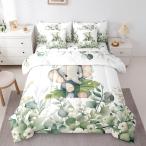 【並行輸入品】Erosebridal かわいい象 ツイン掛け布団セット 7ピース 子供用 グリーン ユーカリ 寝具 掛け布団セット、森林動物ベッ
