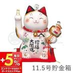 常滑焼 招き猫:貯金箱 白小判付招猫 千万両(手長タイプ)13号<左手を上げる猫はお客を招く! 千客万来 右手を上げる猫はお金を招く!>