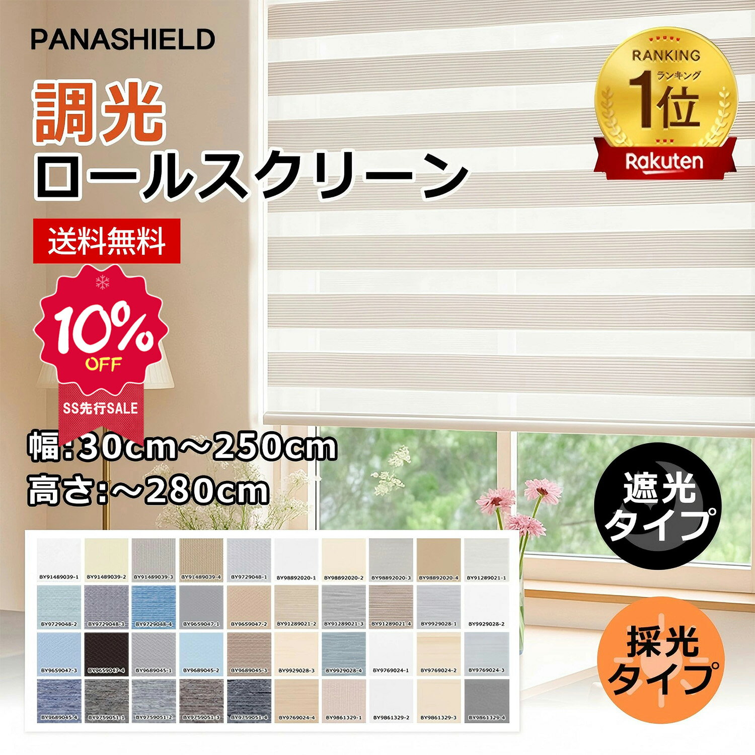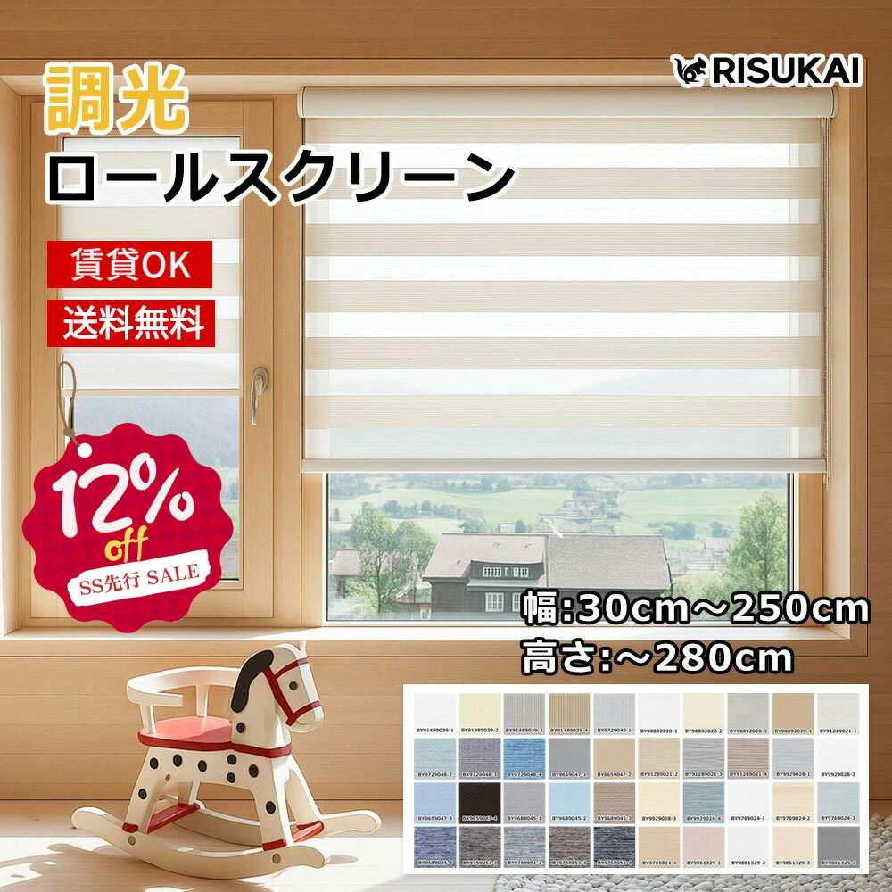 【先着限定10%OFF】調光ロールスクリーン 幅30cm~250cm 高さ0~280cm サイズオーダー ロールカーテン 調光 採光 遮光 遮熱 突っ張り式 チェーン式 UVカット 目隠し 取り付け簡単 賃貸OK 通気 おしゃれ 雰囲気 間仕切り カーテン